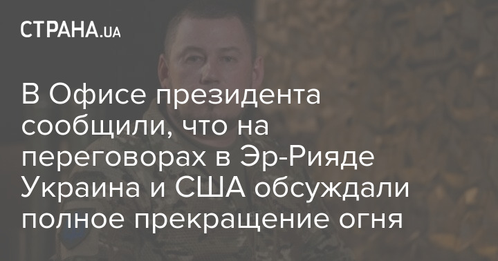 В Офісі президента повідомили, що на переговорах в Ер-Ріяді Україна та США обговорювали повне припинення вогню