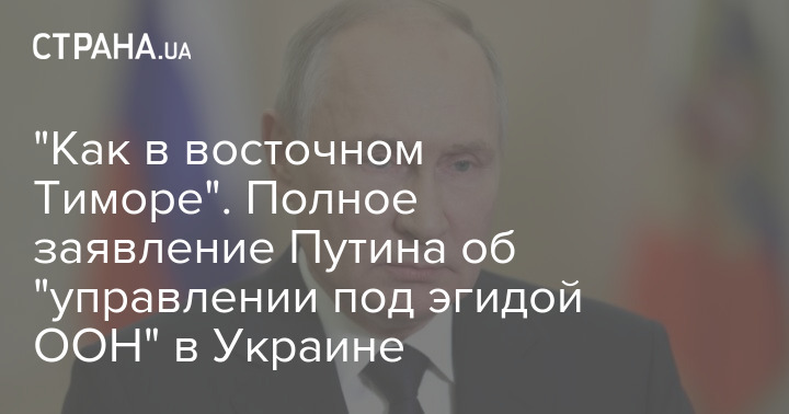 "У рамках миротворчої діяльності ООН кілька разів уже було на те, що називається зовнішнім управлінням, тимчасовою адміністрацією. Так було у Східному Тиморі, на мою думку, 1999 року. Так було в деяких частинах колишньої Югославії, так було у Новій Гвінеї. Так було в деяких частинах колишньої Югославії, так було у Новій Гвінеї. Загалом така практика є. І в принципі, звичайно, можна було б під егідою ООН, зі Сполученими Штатами, навіть із європейськими країнами, зрозуміло з нашими партнерами та друзями, обговорити можливість запровадження в Україні тимчасового управління для того, щоб привести до влади дієздатний уряд, що користується довірою народу, і потім уже з ним укласти мирний договір, підписувати легітимні документи, які будуть визнані у всьому світі. Але це лише один із варіантів. Я не говорю, що інших не існує. Ні, вони є. Але це один із варіантів. І така практика у роботі ООН є", - стверджує Путін.