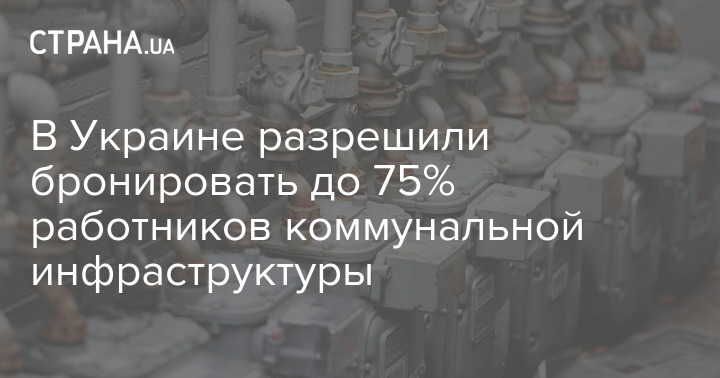 Кабінет міністрів України дозволив підприємствам, які обслуговують об'єкти критичної інфраструктури сектору системи життєзабезпечення, бронювати до 75% своїх працівників.