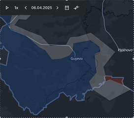 Судячи з карти Deep State, росіяни просунулися до центру прикордонного села і наближаються до нього з обох боків, намагаючись відрізати частину українських сил у північно-східній частині Гуєво.
