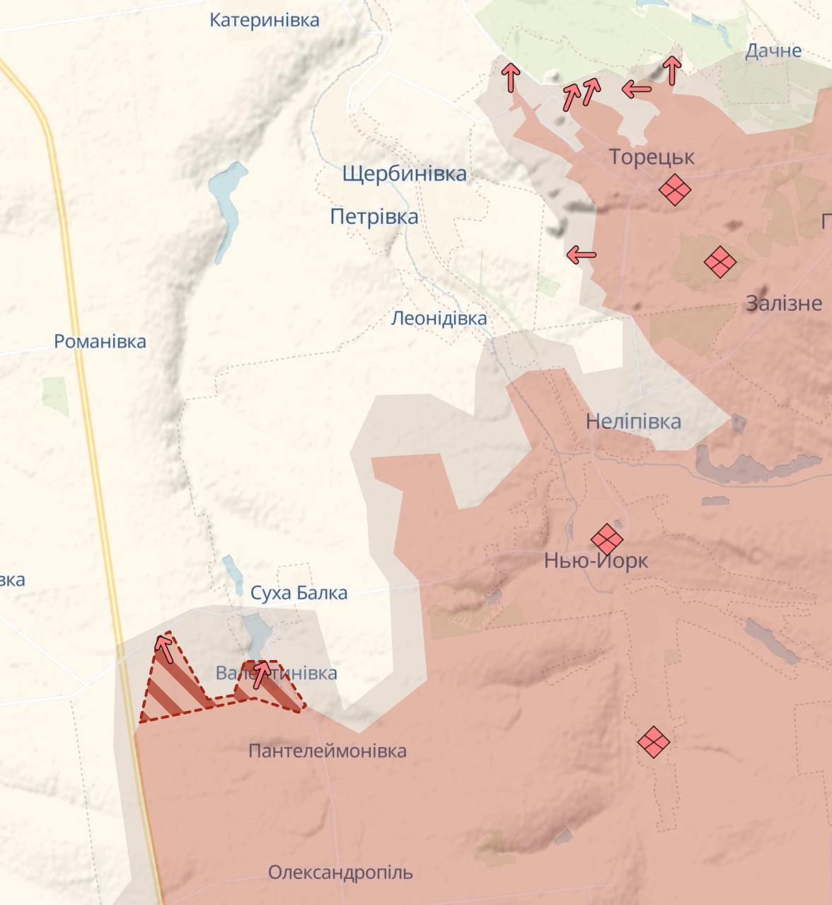 Під Торецьком РФ зайняла нові позиції в районі Валентинівки (трасою у бік Костянтинівки).