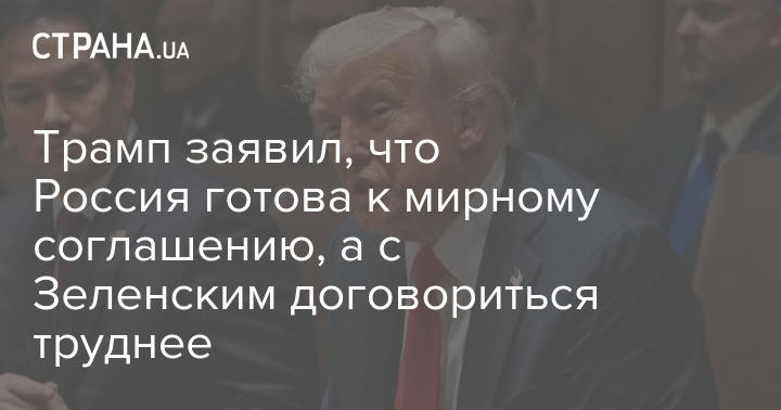 Президент США Дональд Трамп заявив, що Росія готова до мирної угоди, а з президентом Володимиром Зеленським домовитися важче.