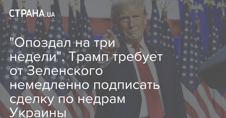 "Україна на чолі з Володимиром Зеленським не підписала остаточні документи щодо дуже важливої угоди про рідкісноземельні елементи зі Сполученими Штатами. Вона спізнилася як мінімум на три тижні. Сподіваюся, вона буде підписана НЕГАЙНО", - заявив Трамп.
