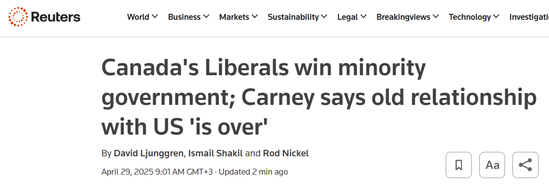 По-друге, президент США Дональд Трамп почав заявляти про анексію Канади та ввів проти неї мита, що викликало серед канадців зростання антиамериканських настроїв. І саме на протистоянні Трампу наголосив у своїй кампанії Карні. Він навіть казав, що Канада може перехопити світове лідерство у США. Це й дозволило правлячій партії, попри всі колишні прогнози, посісти перше місце на виборах.