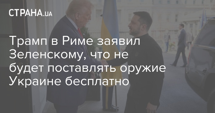 Президент США Дональд Трамп у Римі заявив українському лідеру Володимиру Зеленському, що не безкоштовно поставлятиме зброю Україні. Про це розповів сам Глава держави.