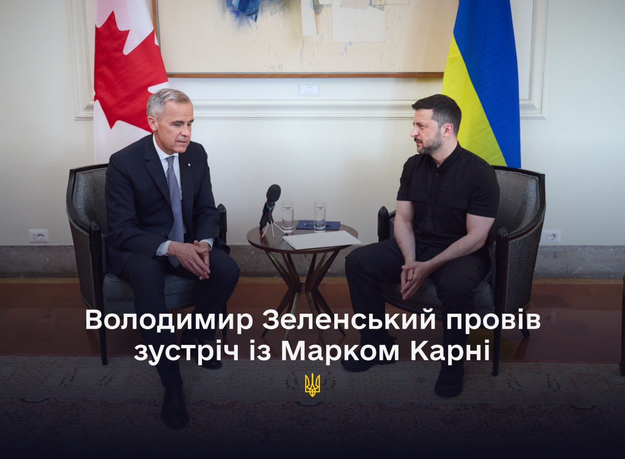 В Офісі президента повідомили, що Зеленський вже прибув до Риму і провів першу зустріч з прем'єр-міністром Канади Марком Карні, під час якої "обговорили повне та безумовне припинення вогню, тиск на Росію, продовження підтримки України та головування Канади у G7".