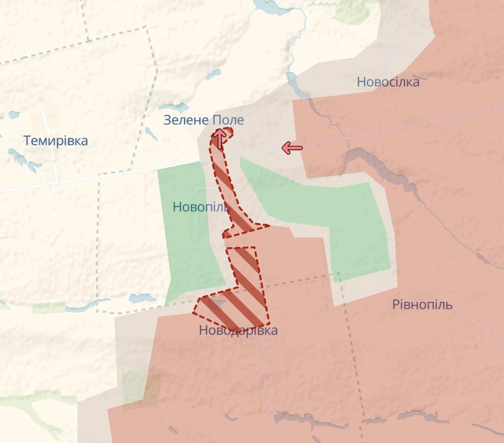 На захід від Великої Новосілки росіяни просунулися з боку Новодарівки до Зеленого Поля, створивши мішок на схід від Новополя.