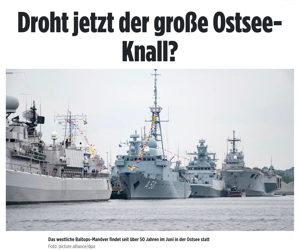 Наступного тижня країни НАТО розпочнуть військово-морські навчання Baltops, що проводяться на початку червня вже понад 50 років. РФ теж відправляє свій флот на навчання - цього разу на місяць раніше, ніж звичайно. У маневрах візьмуть участь 20 російських кораблів. Експерти попереджають, що під час виконання навчальних завдань ескадрильї сторін можуть небезпечно зблизитися.