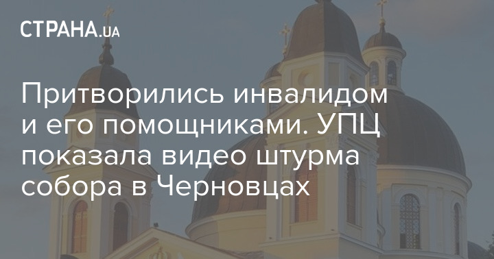 Українська православна церква (УПЦ) опублікувала ролик як спортивного вигляду молоді люди, які намагалися захопити собор у Чернівцях, проникли всередину під виглядом супроводжуючих інваліда у візку.