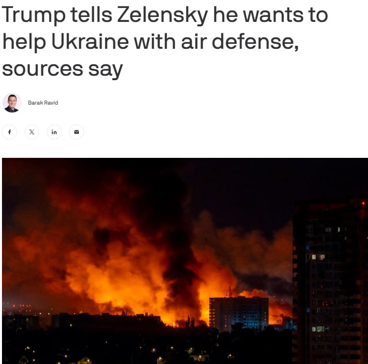 "Трамп сказав, що хоче допомогти з протиповітряною обороною і що він перевірить, що було припинено, якщо щось було припинено", - повідомило американське джерело.