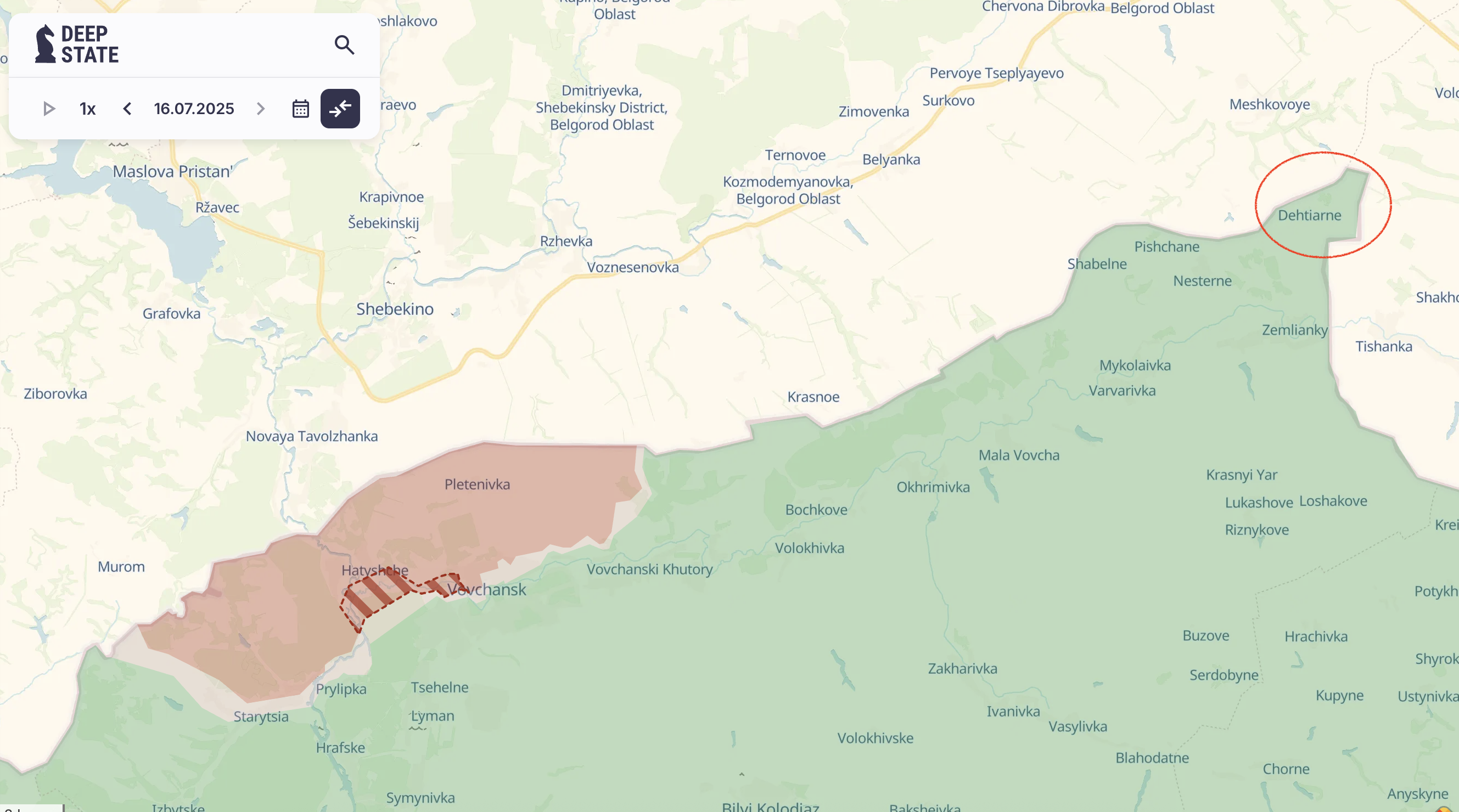 Міноборони РФ заявляє про захоплення Дегятрного в Харківській області, що прямо на кордоні з РФ - це на схід від вовчанської ділянки. Україна цього не підтверджувала.