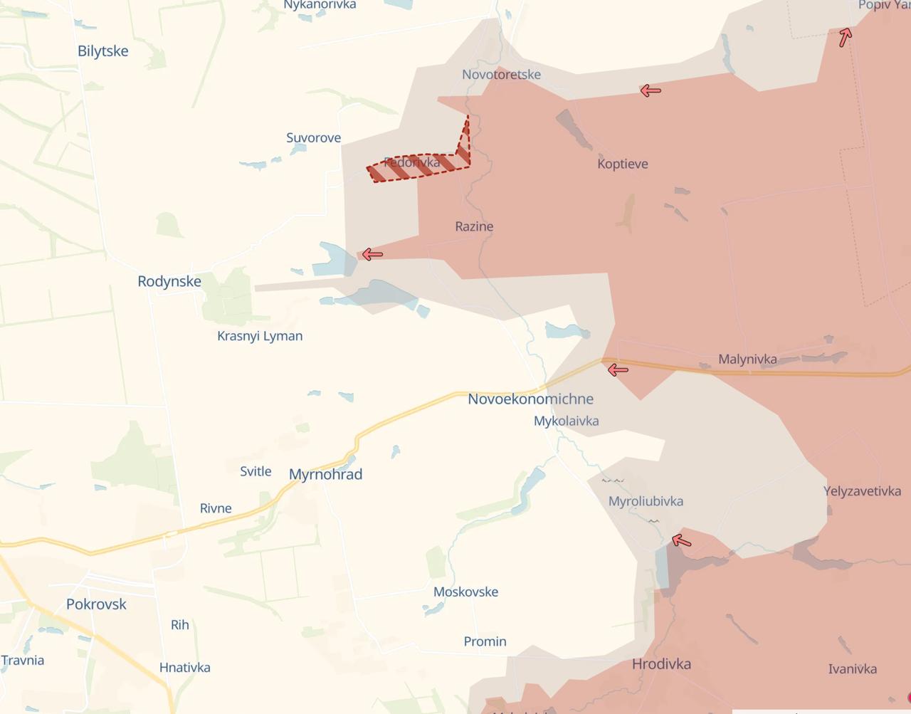 Російські війська просунулися у напрямку Сіверська з боку Верхньокам'янського. Також вони зайняли нові позиції на північ від Мирнограда біля Федорівки.