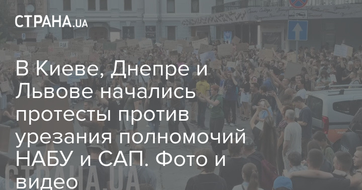 У столиці України та трьох обласних центрах відбуваються масові збори людей, які виступають проти закону про обмеження повноважень Національного антикорупційного бюро та Спеціальної антикорупційної прокуратури, який уже підписав президент Володимир Зеленський.