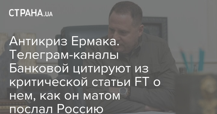 Наближені до Банкової телеграм-канали з різко критичної статті британської газети Financial Times про керівника Офісу президента під назвою "Поляризуюча сила Андрія Єрмака, іншого військового лідера України" виділили та опублікували лише один момент.