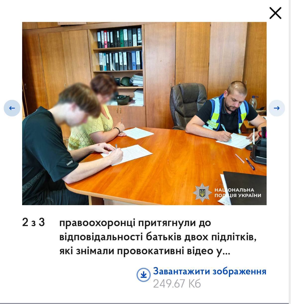 "Ювенальні поліцейські провели з неповнолітніми профілактичну бесіду, а на їхніх батьків склали адміністративні матеріали за ст. 184 КУпАП - неналежне виконання батьками своїх обов'язків щодо виховання дітей, їм загрожує штраф", - йдеться у повідомленні.