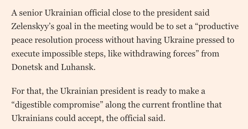 "Для цього український президент готовий піти на зручний компроміс за нинішньою лінією фронту, на який українці могли б погодитися", - сказав чиновник газеті FT.