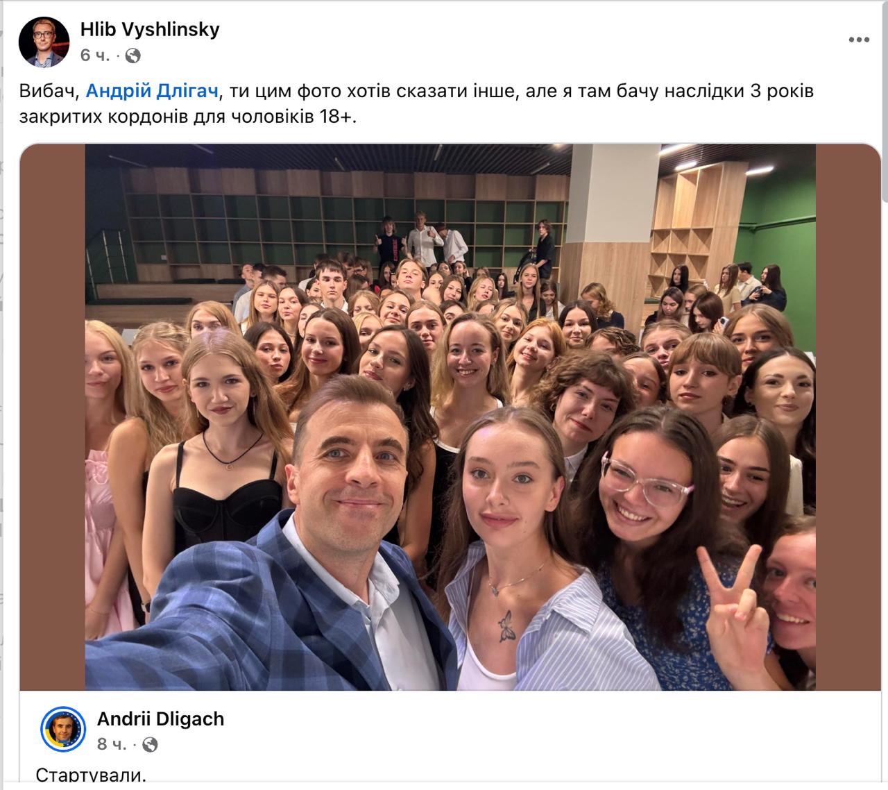 Викладач економічного факультету Київського національного університету імені Тараса Шевченка Андрій Длігач опублікував фото першого курсу, на якому видно, що переважна більшість учнів – дівчата.