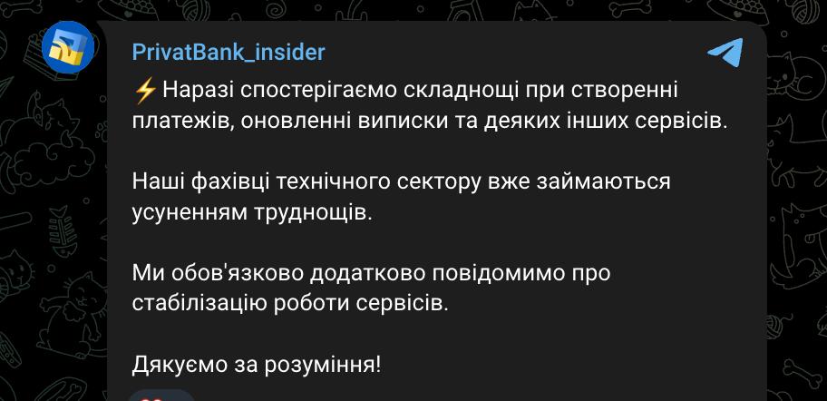 Про це йдеться в повідомленні Telegram-каналу PrivatBank Insider.