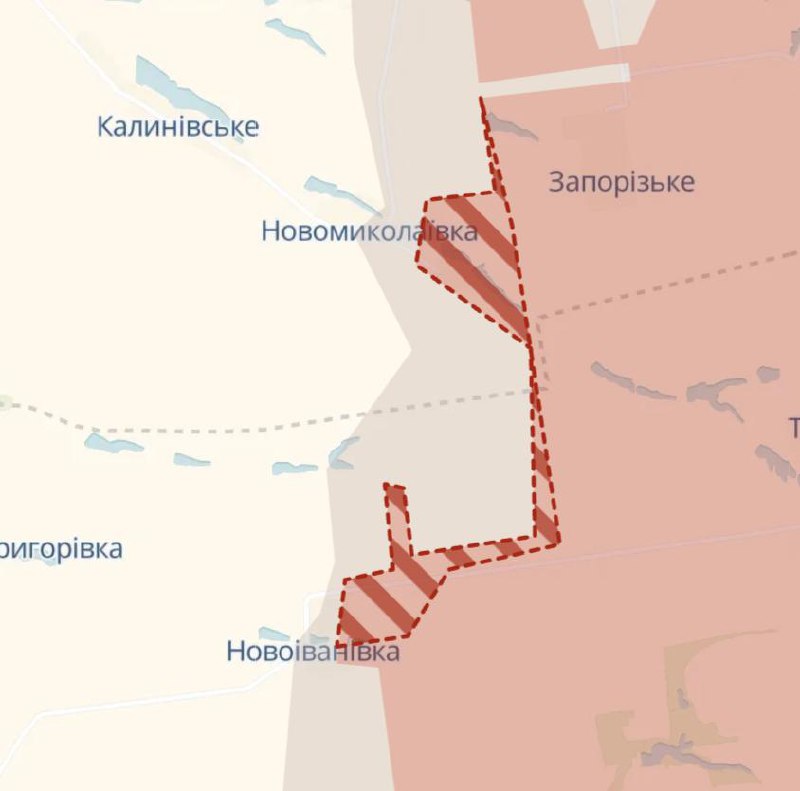 Російські війська просунулися на захід у Дніпропетровській та Запорізькій областях. Рух зафіксовано у районі Новомиколаївки та Новоіванівки (за низкою даних, вона вже захоплена).
