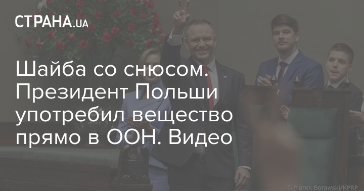 Президент Польщі Кароль Навроцький поклав собі шайбу зі снюсом до рота прямо в ООН.