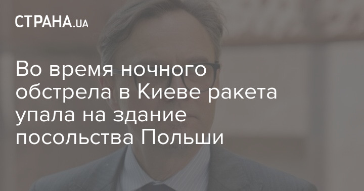 Під час нічного обстрілу у Києві ракета впала на будівлю посольства Польщі