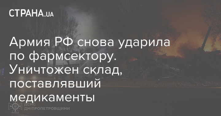За інформацією видання, логістичний хаб у Дніпрі, ключовий для постачання медикаментів у південні області України, було повністю знищено. За попередніми даними, серед персоналу немає постраждалих.