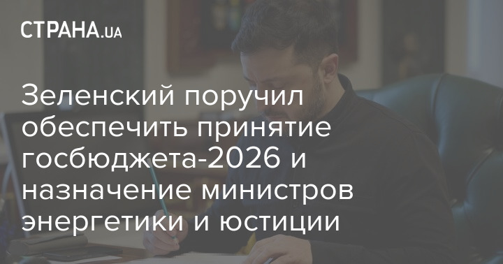 Зеленський доручив забезпечити ухвалення держбюджету-2026 та призначення міністрів енергетики та юстиції