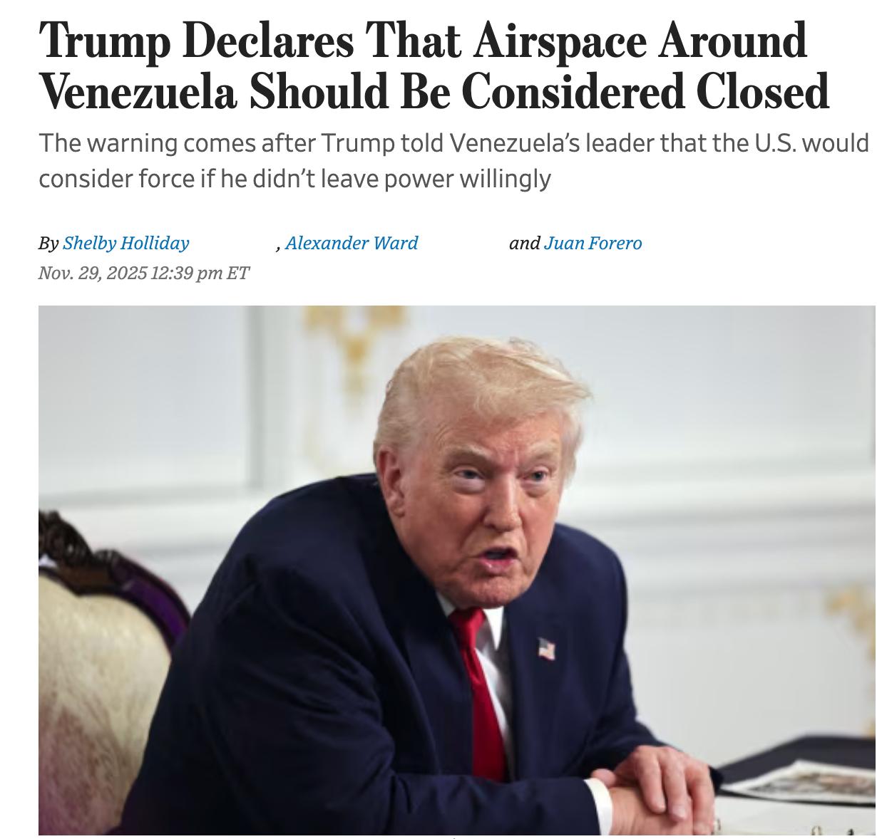 Нагадаємо, напередодні Дональд Трамп оголосив про закриття повітряного простору над Венесуелою та навколо неї. Рішення прозвучало на тлі нарощування військового угруповання США в Карибському басейні.