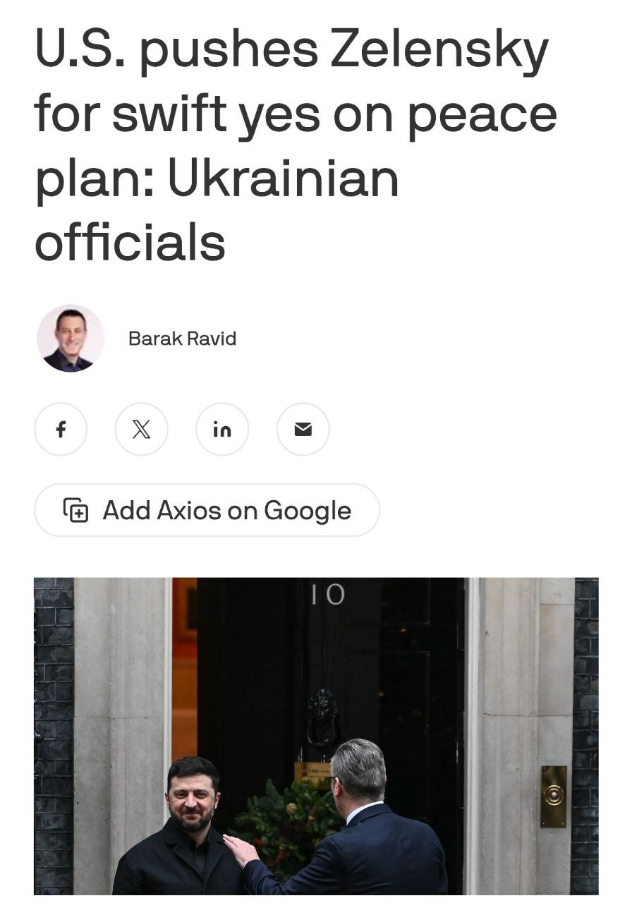 7.58 США тиснуть на Зеленського, щоб він прийняв "великі територіальні втрати та інші поступки", пише видання Axios з посиланням на джерела.