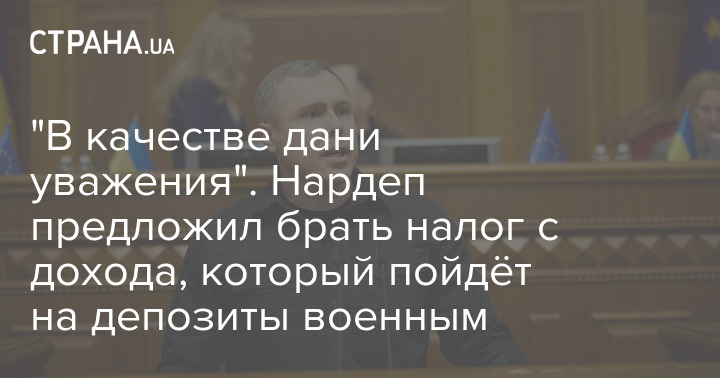 "В якості данини поваги". Нардеп запропонував брати податок із доходу, який піде на депозити військовим