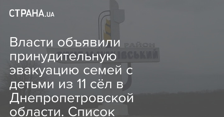 Влада оголосила примусову евакуацію сімей з дітьми та 11 сіл у Дніпропетровській області. Список