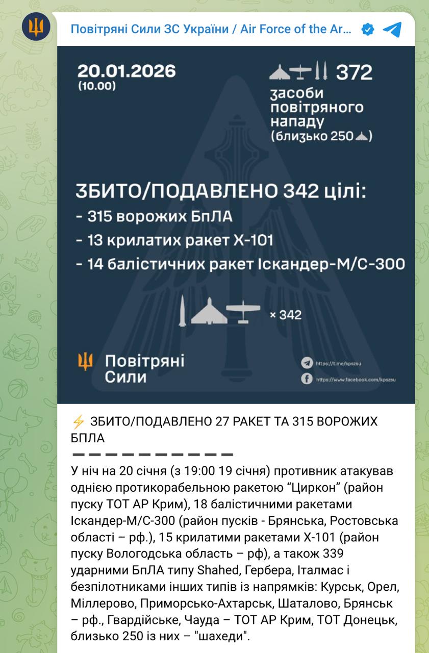 У вівторок, 20 січня, в Україні триває 1427-й день війни з Росією.