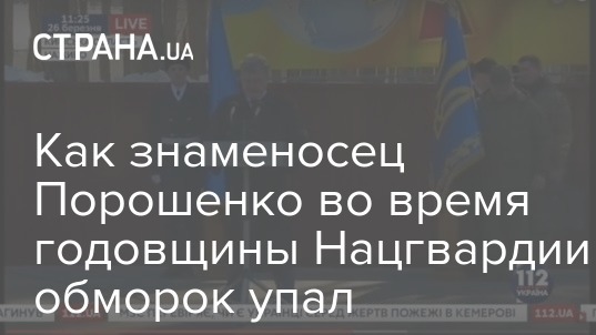В Киевской области на праздновании годовщины Нацгвардии потерял сознание солдат почетного караула Петра Порошенко. Знаменосец стоял слева от Порошенко, пошатнулся и прислонился спиной к забору. К нему оперативно подбежали несколько человек и не дали ему упасть. Солдата увели, а вместо него у знамени стали другие нацгвардейцы.